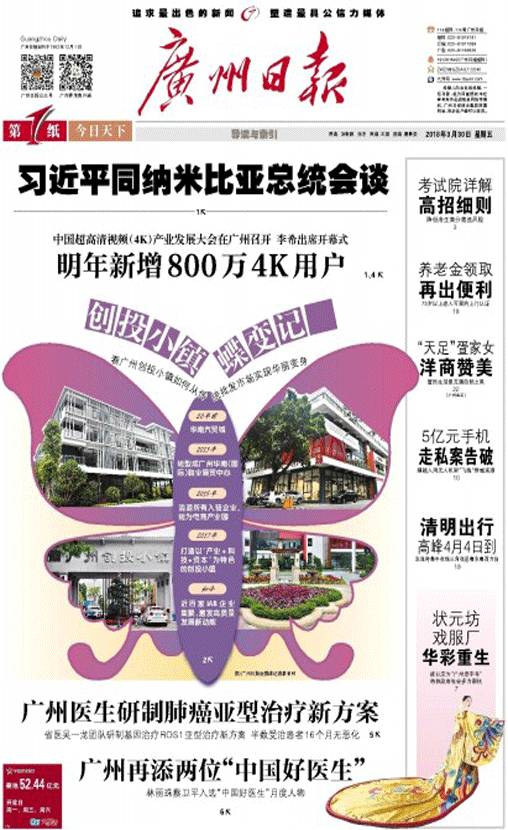 《廣州日報(bào)》創(chuàng)刊于1952年12月1日,日均發(fā)行量達(dá)185萬份,是廣東省發(fā)行量第一、訂閱量第一、零售量第一和傳閱率第一的報(bào)紙。北京奧運(yùn)會期間,《廣州日報(bào)》日均發(fā)行量一舉突破了200萬份大關(guān)?!稄V州日報(bào)》同時(shí)也是全國經(jīng)營最為成功的報(bào)紙之一,2008年廣告經(jīng)營總額達(dá)22.06億元,連續(xù)15年位居全國平面媒體之首。此外,《廣州日報(bào)》在2006年度中國納稅百強(qiáng)系列排行榜上以1.4423億元稅費(fèi)位居中國報(bào)業(yè)之首,其品牌價(jià)值于2009年增至72.26億元,連續(xù)五年在“中國500最具價(jià)值品牌”排行榜上名列中國報(bào)業(yè)三甲、華南地區(qū)之首。